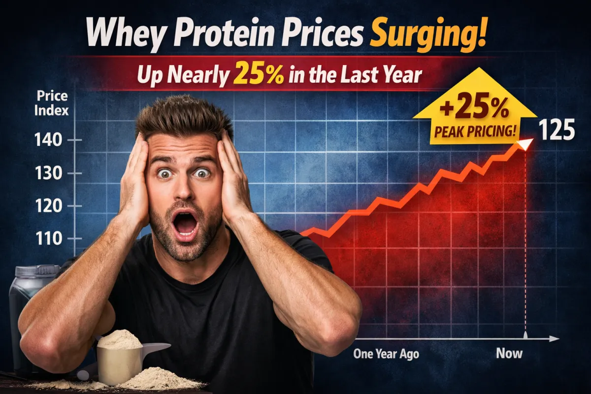 Whey protein prices are up nearly 25% year-over-year due to surging demand from mainstream food brands like Starbucks and Kodiak, the rise of clear protein drinks, and GLP-1 medication users being prescribed higher protein intake — all competing for the same limited whey supply.